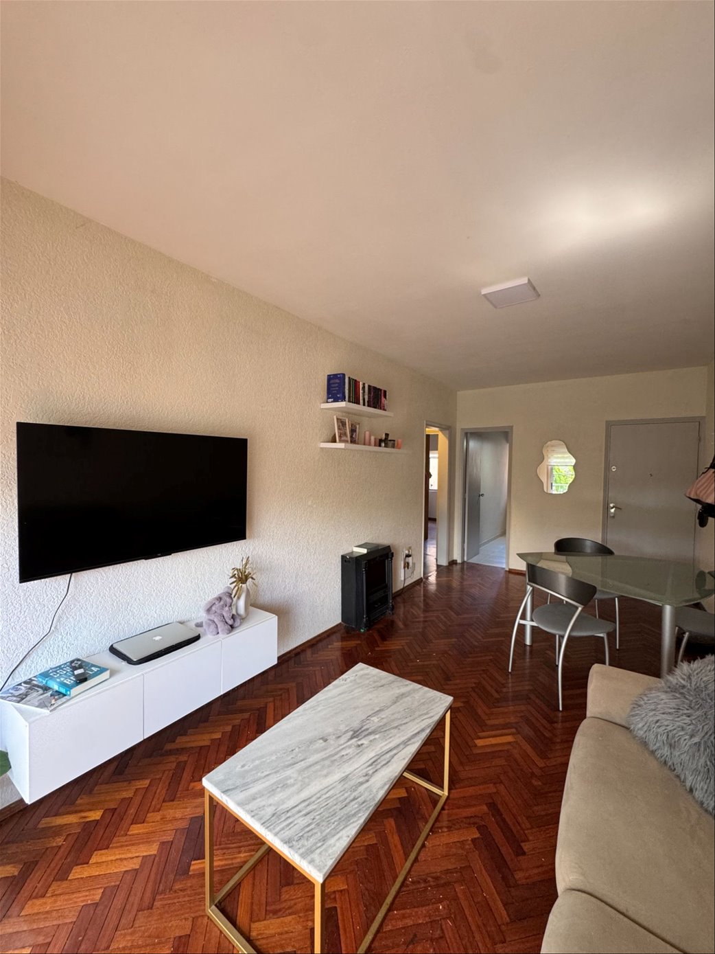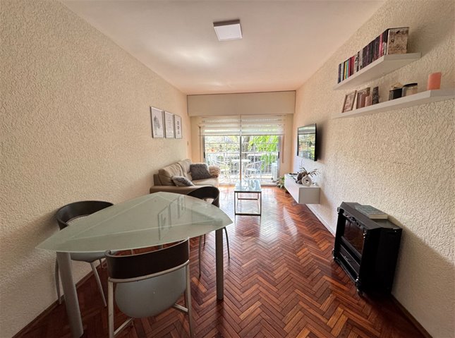 -Living comedor amplio al frente. Orientación oeste. Iluminado. Pisos de parquet plastificados en buen estado de conservación . Salida balcón de aproximadamente 5 m2 .