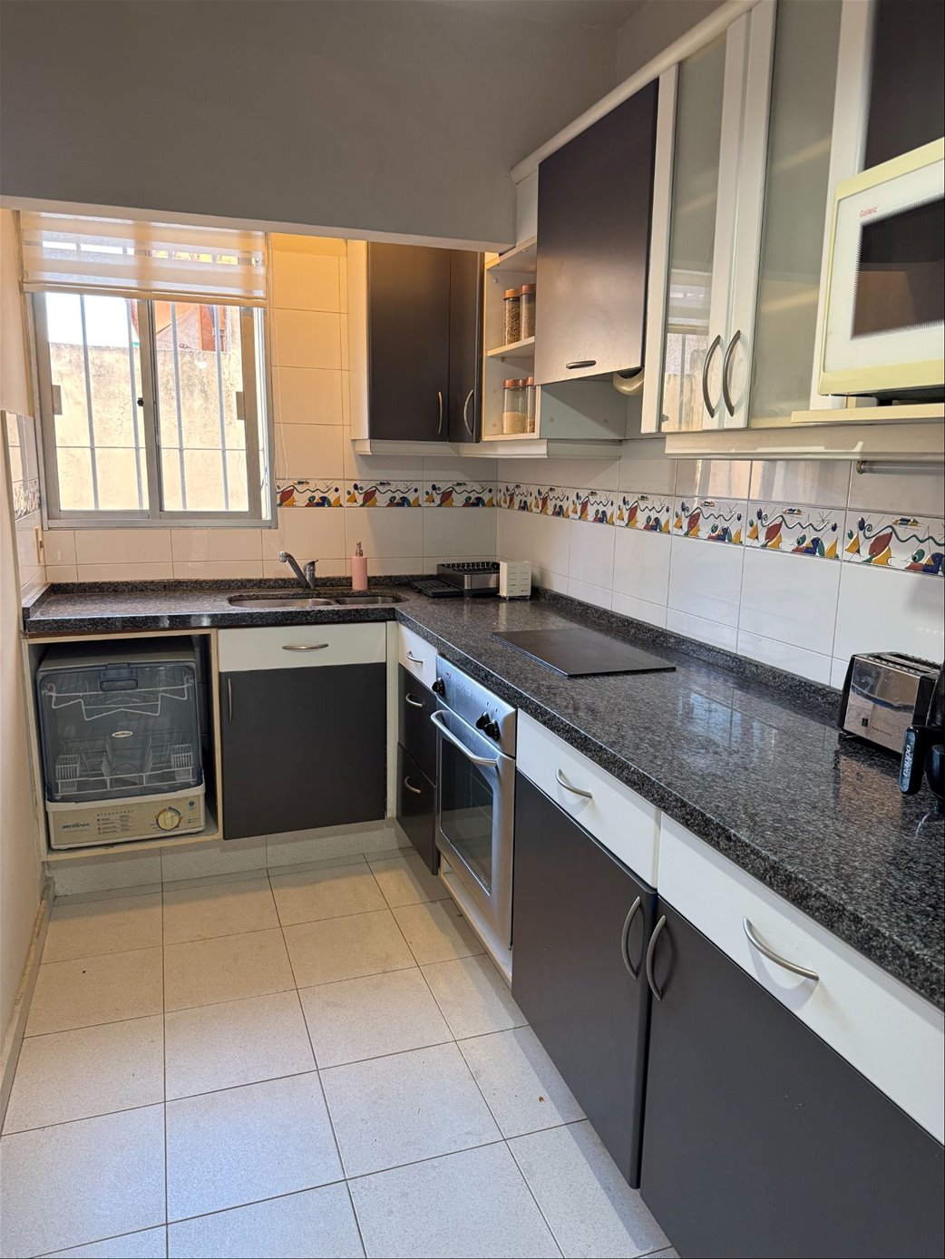 -Cocina reciclada con muebles aéreos y bajo mesada. Espacio para lavavajilla. Horno de empotrar y anafe. Calefón.
